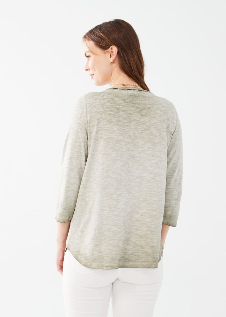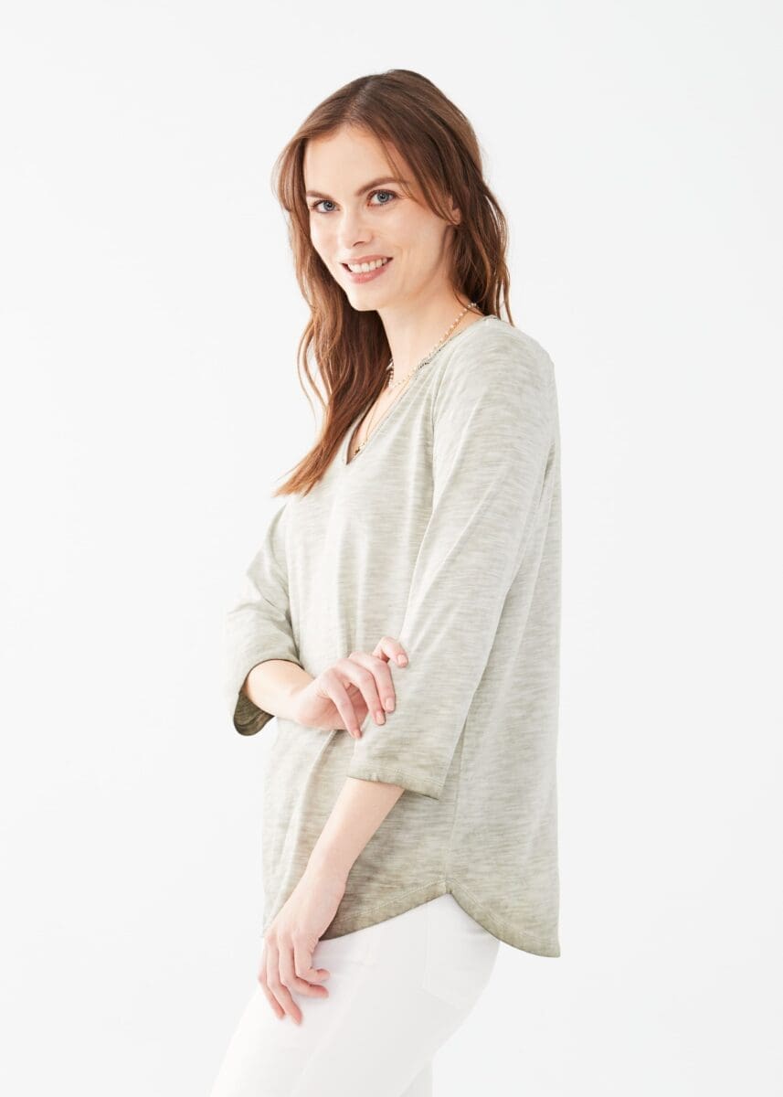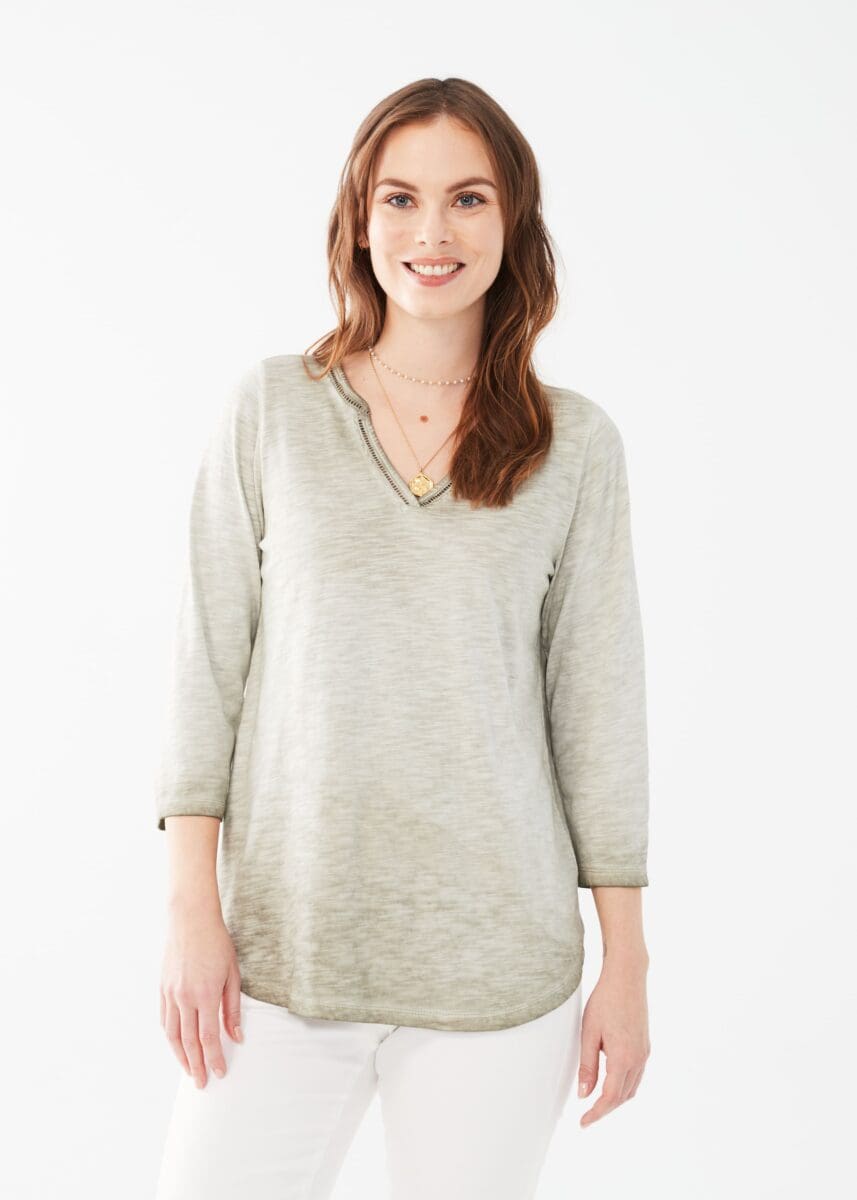 FDJ 3/4 Sleeve Split Neck Top, Style #3107476
