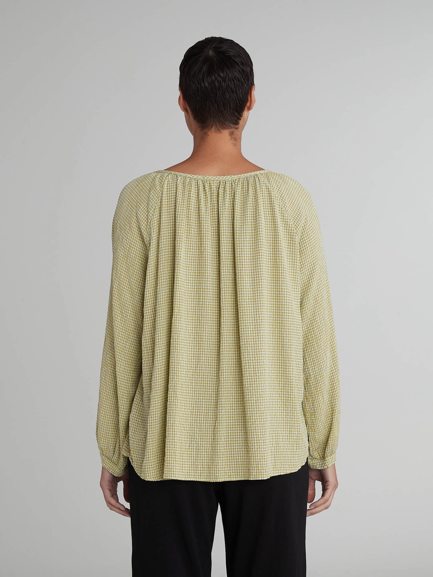 Discover the Cut Loose Crinkle Check Collarless Blouse at Adventure Clothing!
