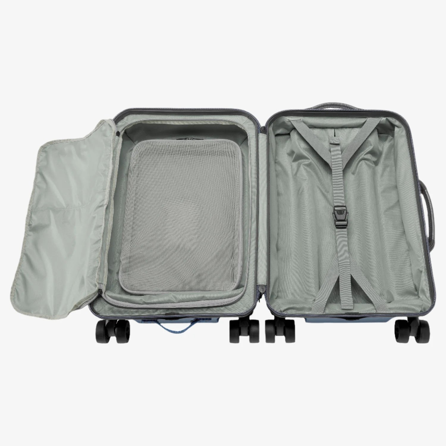 The reinvented Tarmac 4-Wheel Carry-On is a smart hybrid of rugged durability and everyday convenience. With a tough polycarbonate shell and a front panel made from 100% ocean-recycled nylon, this carry-on offers easy access to your laptop, expandable storage, and smooth-rolling wheels for effortless mobility. It’s built for real-world travel, with thoughtful features like TSA locking zippers, internal compression straps, and heavy-duty grab handles.