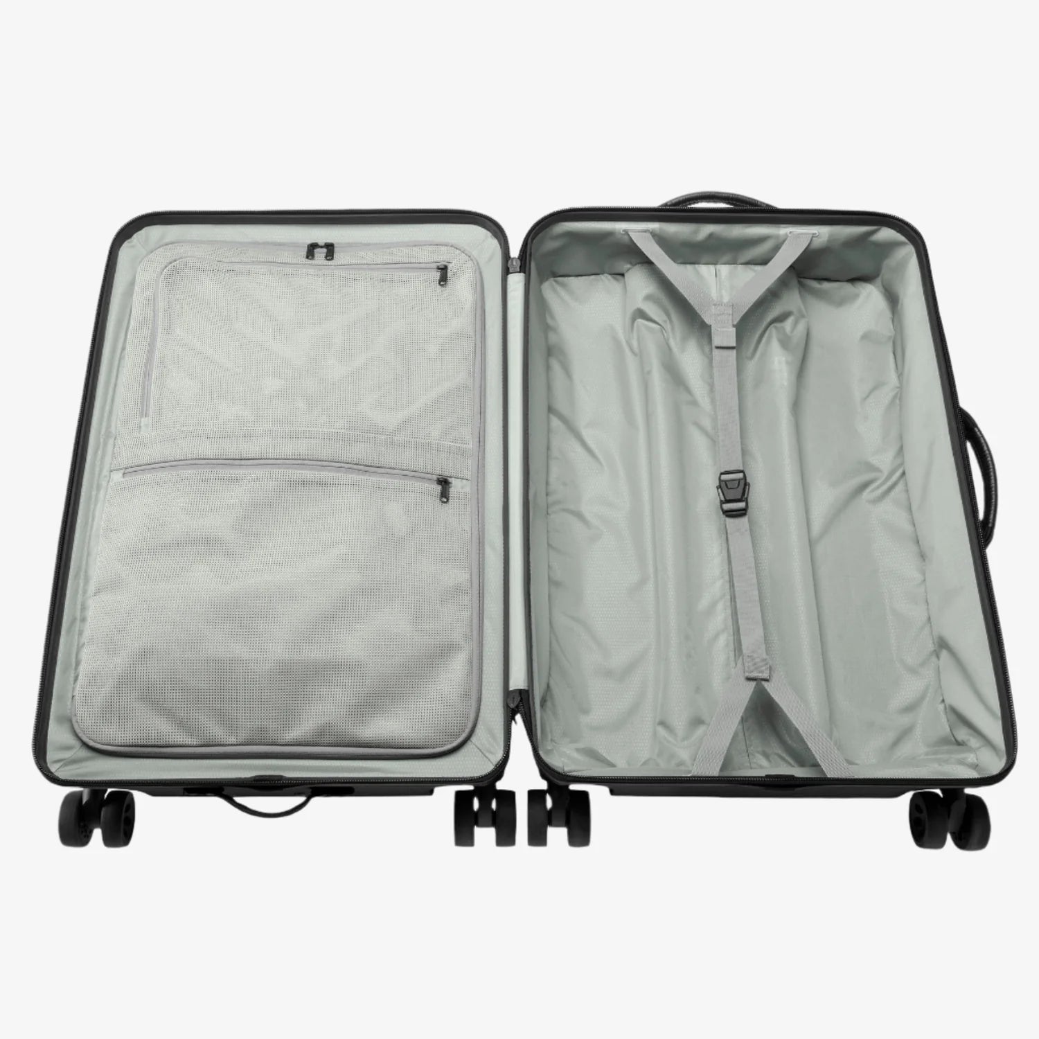 Maximum-capacity hard-shell luggage engineered with soft-shell front access & internal organization.