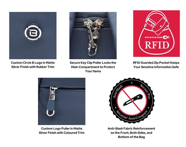 - Interior anti-theft RFID Guarded Zip Pocket protects your passport, small wallet and sensitive information