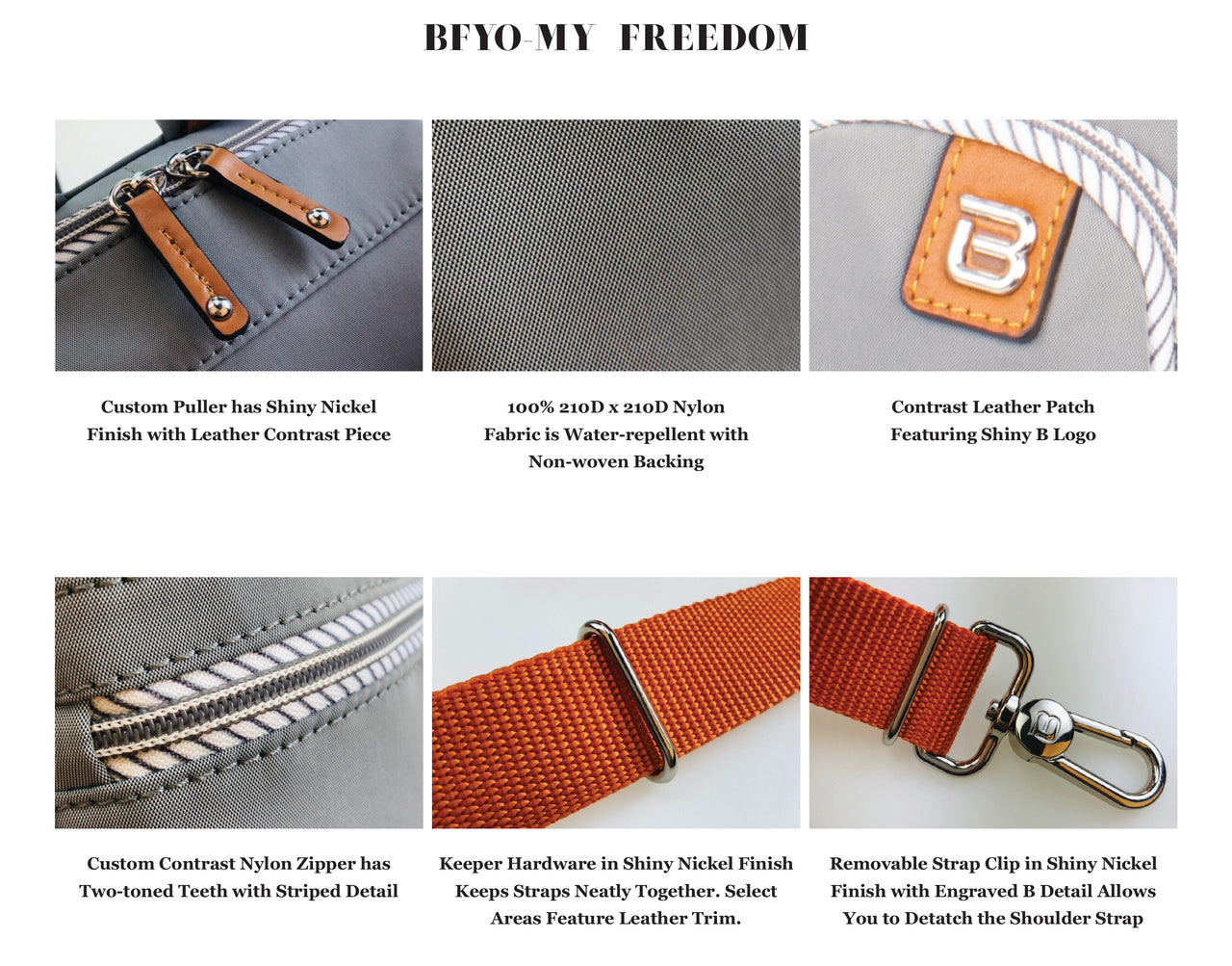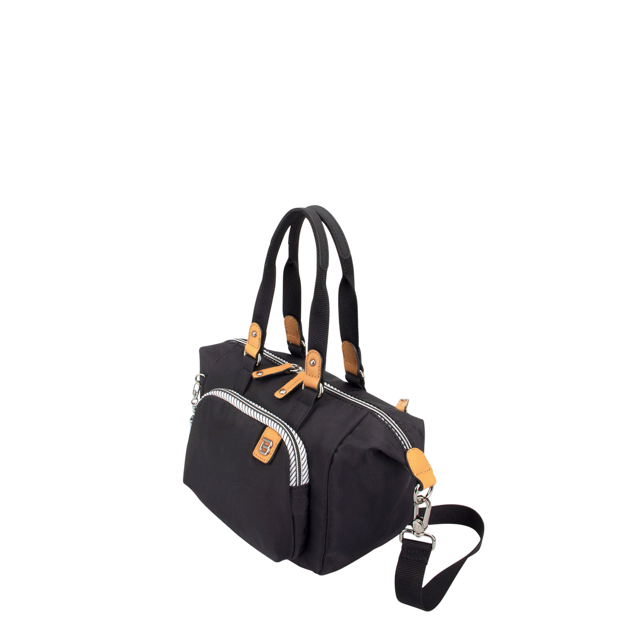 The elegant Longport satchel keeps you stylish whether you're running errands or enjoying some well deserved down time. From the My Freedom collection, Longport features shiny nickel hardware, select areas with contrast leather trim, striped details, our signature B logo and RFID guarded protection. Longport has lightweight, water-repellent 100% 210D x 210D nylon fabric that resists wear and tear, won’t weigh you down and is easier to clean. A practical take on the mini bag style, Longport has a roomy main section for your daily essentials, a slip pocket for your mobile and a bright printed interior so you can quickly spot your items. Whether you like to carry it by hand or wear it across your body, Longport gives you multiple options to enjoy.