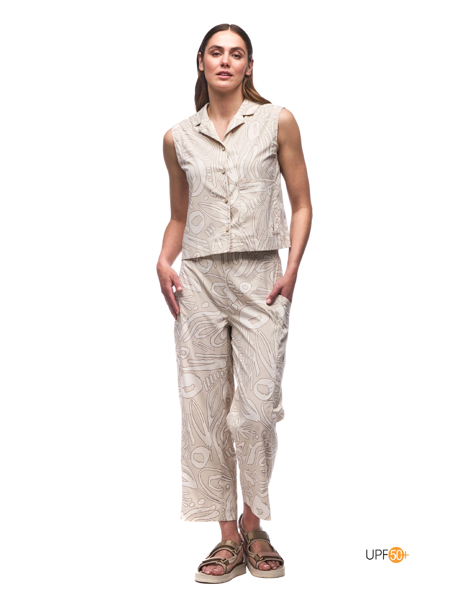 Effortlessly functional with a modern silhouette. The Indyeva PIERNA Pant is perfect for travellers—whether you're heading around the world or just around the block. These high-waisted, wide-leg cropped pants feature a ribbed 4-way stretch waistband, quick-dry and moisture-wicking fabric, and a secure zip pocket for essentials. With UPF 50+ sun protection and OEKO-TEX® certified materials, they deliver comfort, durability, and peace of mind in every step.