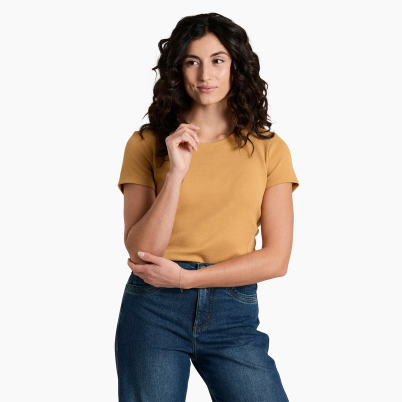 Featuring a soft, ribbed fabric and a close-to-the-body fit, the REMI™ Short Sleeve by KÜHL adds a touch of style to your summer wardrobe. Dressed up or down, our performance knit efficiently wicks moisture for quick dry, odor-resistant performance. Maximum sun protection and versatile everyday wear.