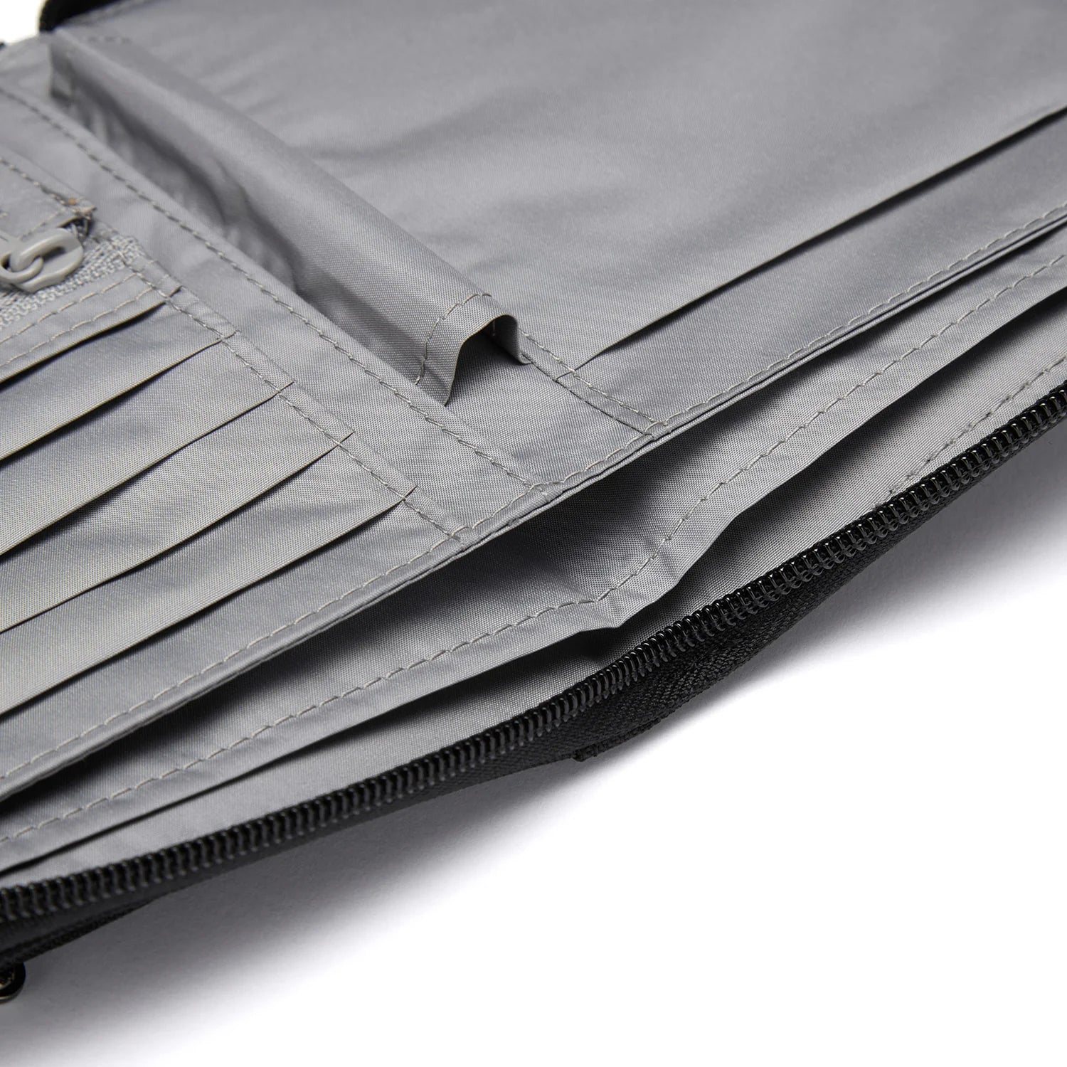 Sort your travel essentials into Pacsafe®'s RFIDsafe™ compact travel organizer. A zip folder that protects the information stored on your passport and cards.