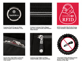 - Interior anti-theft RFID Guarded Zip Pocket protects your passport, small wallet and sensitive information