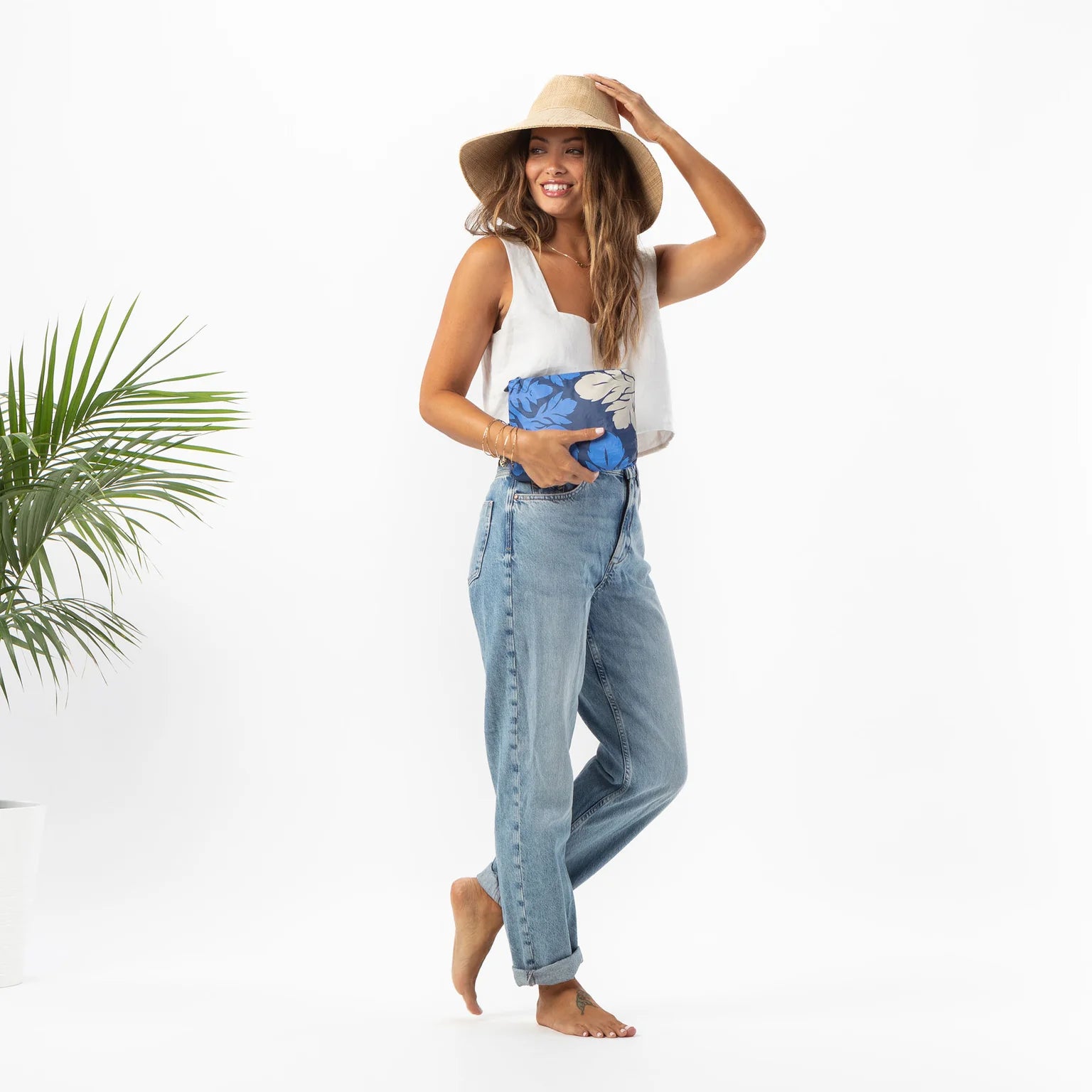 Use our small pouch as a wet bikini bag to keep your dry items separate after a swim, a surf session, or a day at the beach. This lightweight pouch will be your go-to makeup bag for travel or everyday use. It can also double as a cocktail-proof clutch to go from beach to bar or pool to pau hana.