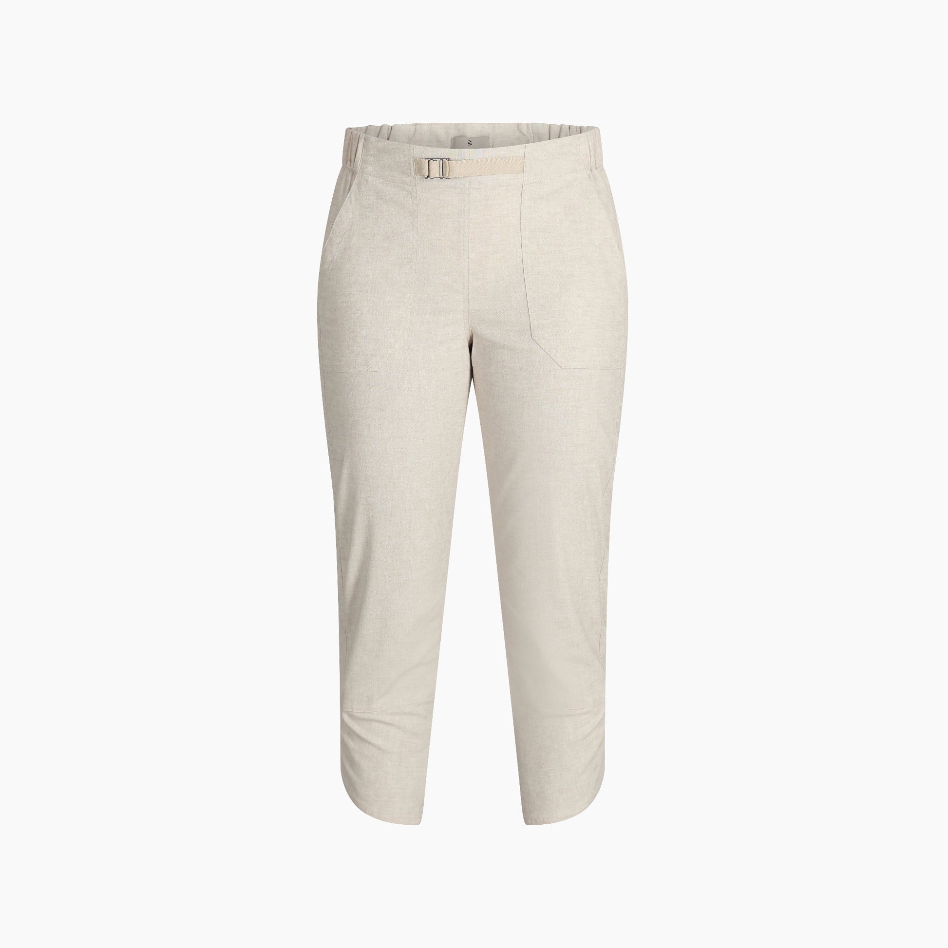 The pull‑on waistband with a front belt offers adjustable comfort, while the scalloped crossover hem adds a feminine touch. Secure pockets keep essentials close, and the undyed colorway reduces water and energy use. Hemp and recycled polyester create a lower‑impact fabric that gets softer with every wear.