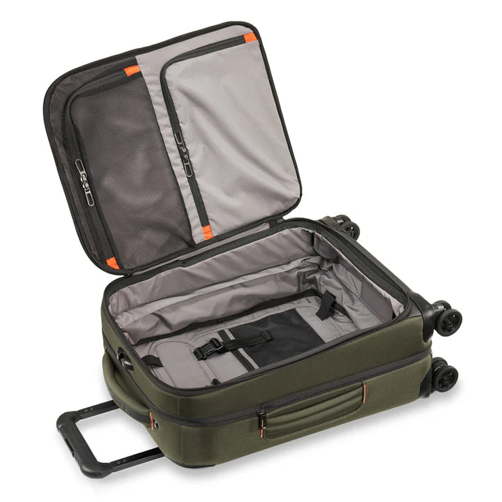 The ZDX International 21” Carry-On Expandable Spinner from Briggs & Riley fits everything. This classy global carry-on fits easily in most international airlines’ overhead bins while delivering 2.5” of expandable packing room for all your essentials, and our exterior-mounted Outsider® handle keeps your packing surface flat and your clothes crisp and neat. With travel-smart advantages like external phone charging and quick access to checkpoint essentials, it’s among our best expandable carry-on luggage for the modern international voyager.