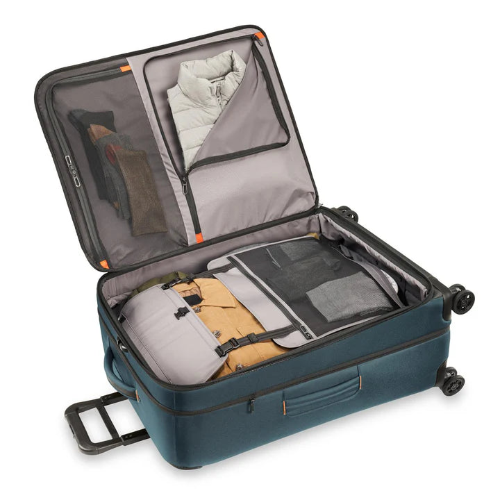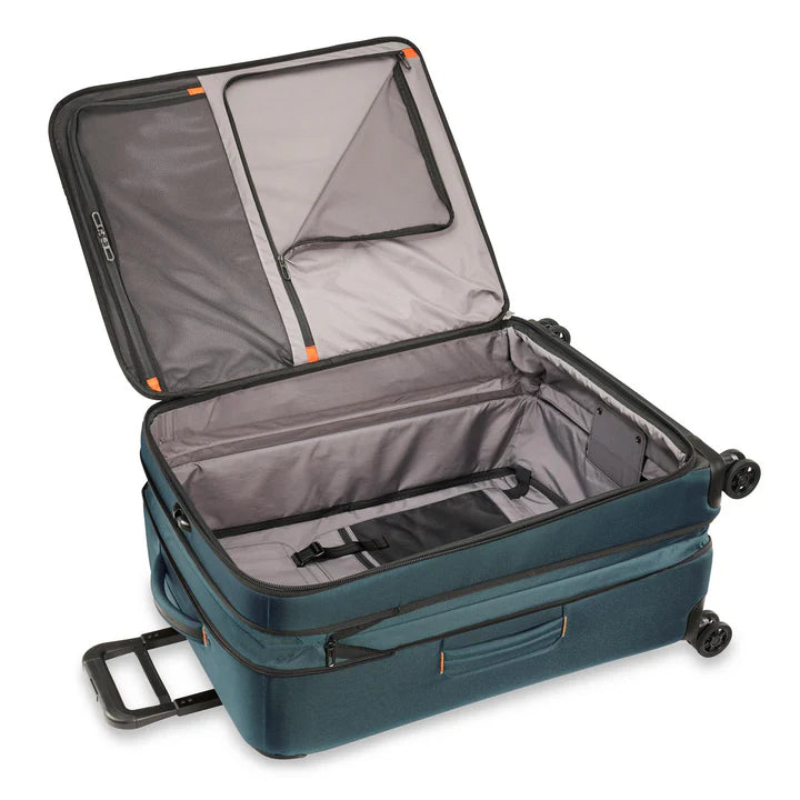 Experience the best of everything with the ZDX Large Expandable Spinner from Briggs and Riley, a sporty spinner suitcase that sets a new bar for expandable luggage with up to 2.5” of zip-open expansion depth. The exterior-mounted Outsider® handle creates a flat packing surface to keep garments impeccably crisp, while cinch-down garment panels and multiple front pockets deliver near-unlimited options for organizing travel essentials. Naturally, it’s all made for lifetime endurance with the unrivaled quality of Briggs & Riley.